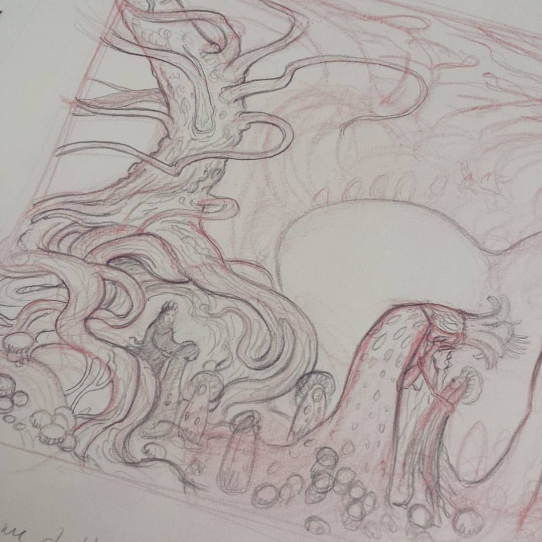 Sketching out some thumbnails this morning. Got inspired by Bauer and having feels. “The birds in the forest, they bitterly weep, saying Where shall we shelter? Where shall we sleep?” #art #sketch #pencil #illustration #forest #forestspirit #spirits #mushrooms #trees #woods #process #thumbnails #drawing