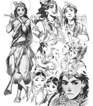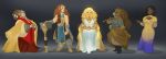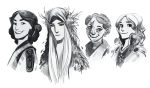Now let’s talk about Dwarf women. Recently I decided to take on the task of designing dwarf women who didn’t just feel like little humans, who could be considered attractive, and who also have beards- because Dwarf women really really should have beards, even if it’s just a little. Over the course of designing them I considered that probably the main reason Dwarf women are so rarely portrayed with beards is that in our society, beards are a sign of masculinity and being women, they are often still drawn to appeal to our society’s sensibilities. But Dwarves in fantasy are an entirely separate race from humans with their own styles and sensibilities and saying that their females shouldn’t have beards because it doesn’t appeal to humans is kind of like saying a bird shouldn’t have a beak because it doesn’t appeal to cats. That all led me down the rabbit hole of thinking about what would likely actually be considered attractive in a Dwarven society– well-maintained beards; Solid, muscled bodies; dainty hands suited to detailed crafting, etc.- all in all, it was a pretty fun and challenging project!